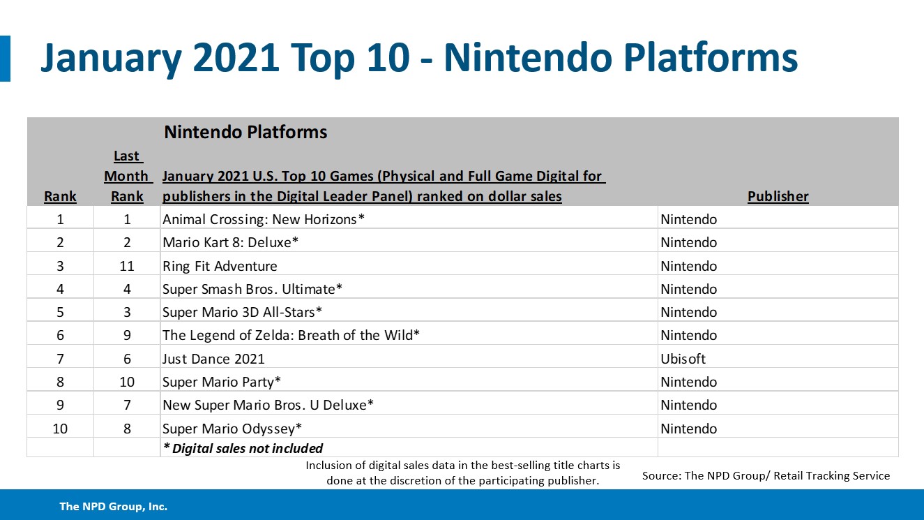 Another round of data is in from this month’s NPD report. We now have a look at the best-selling games in the United States for January specifically on Switch.