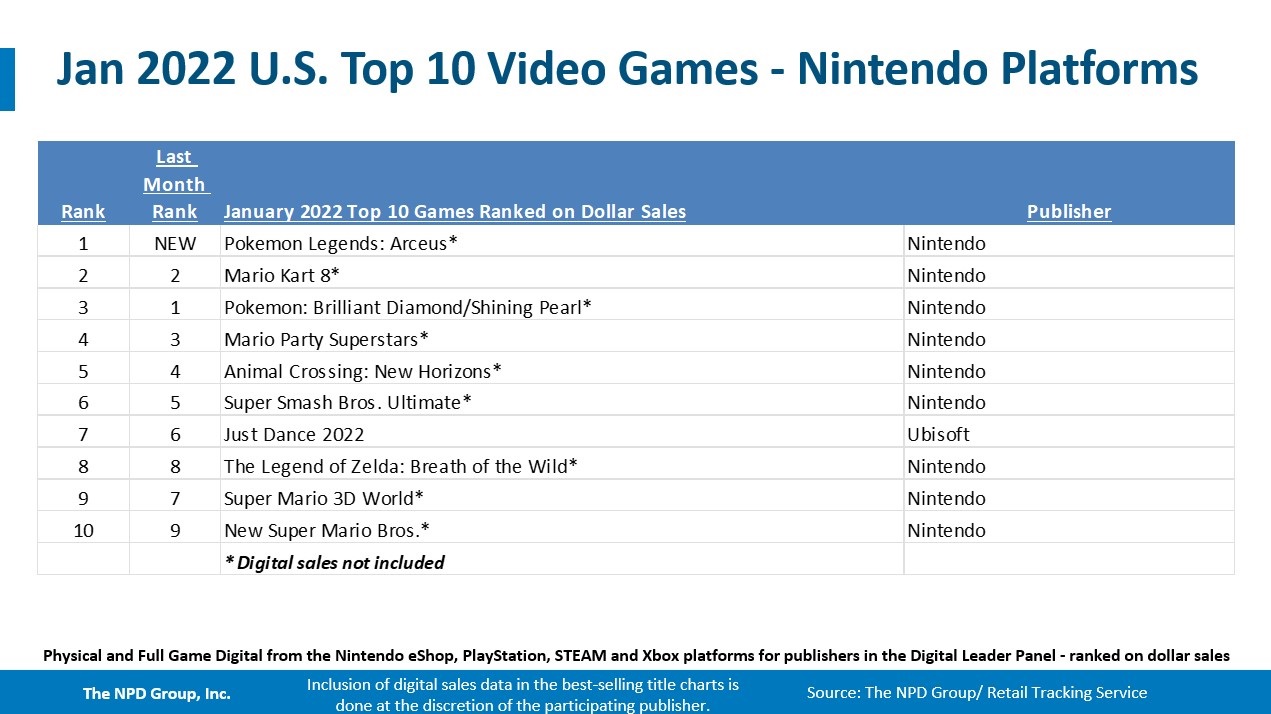 Another round of data is in from this month’s NPD report. This time around, we have a look at the best-sellers on Switch specifically in the U.S. for the month of January 2022. Continue on below for the full results.