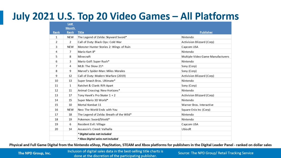 July 2021 NPD: top 20 best-selling games in the U.S. – Zelda: Skyward Sword HD at #1, Monster Hunter Stories 2 at #3