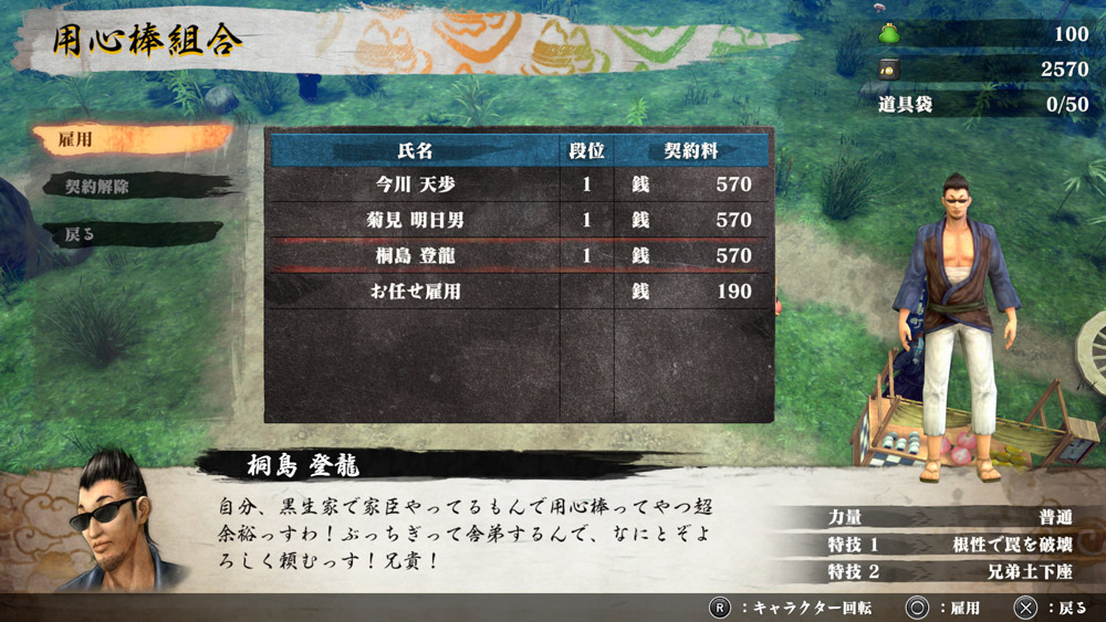 – The Post Town sells tools, the Akadama Clan sells decorations and costumes, and the Kurou Family deals in bodyguard brokerage and increasing the number of items you can carry and store