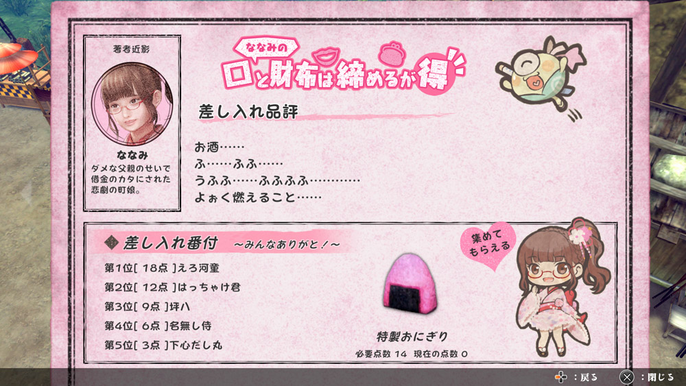 – By dropping off gifts Nanami likes, you will accumulate “Daughter Points” and receive items as thanks