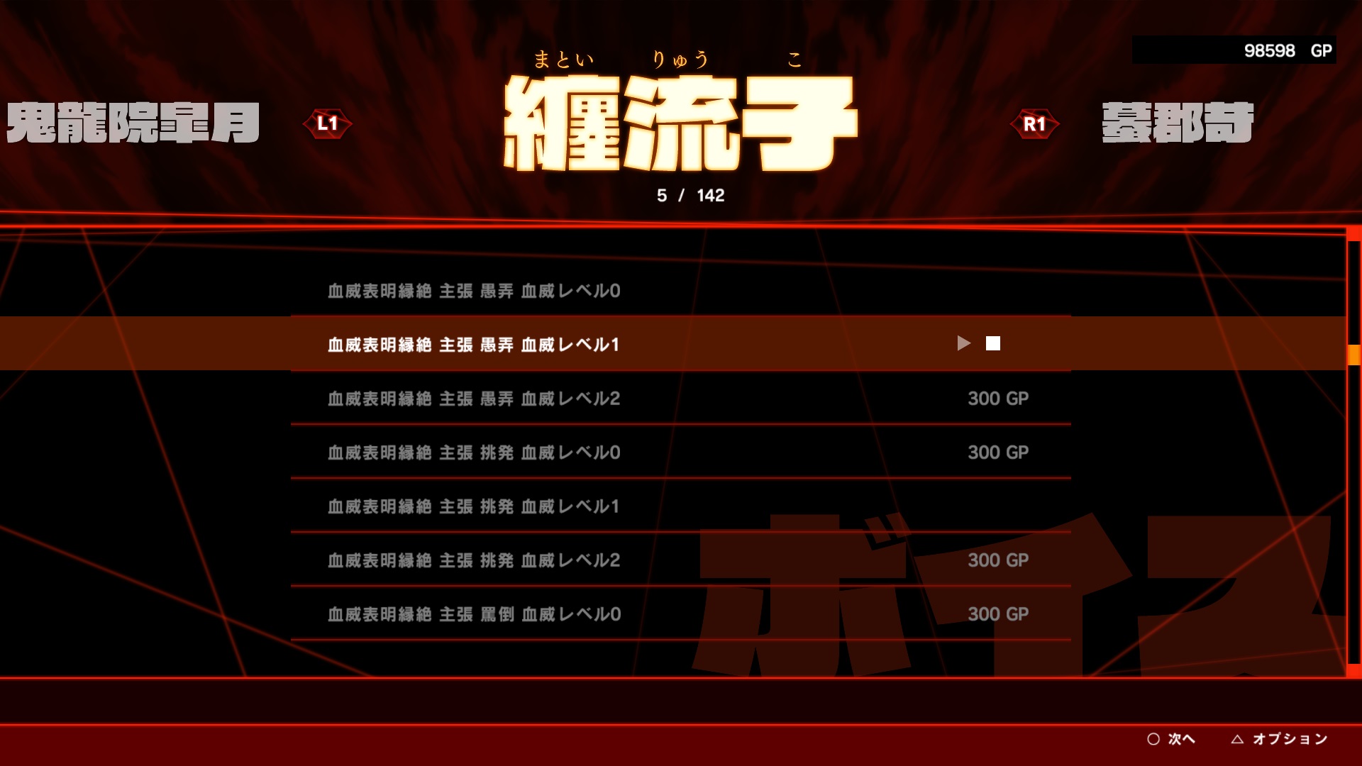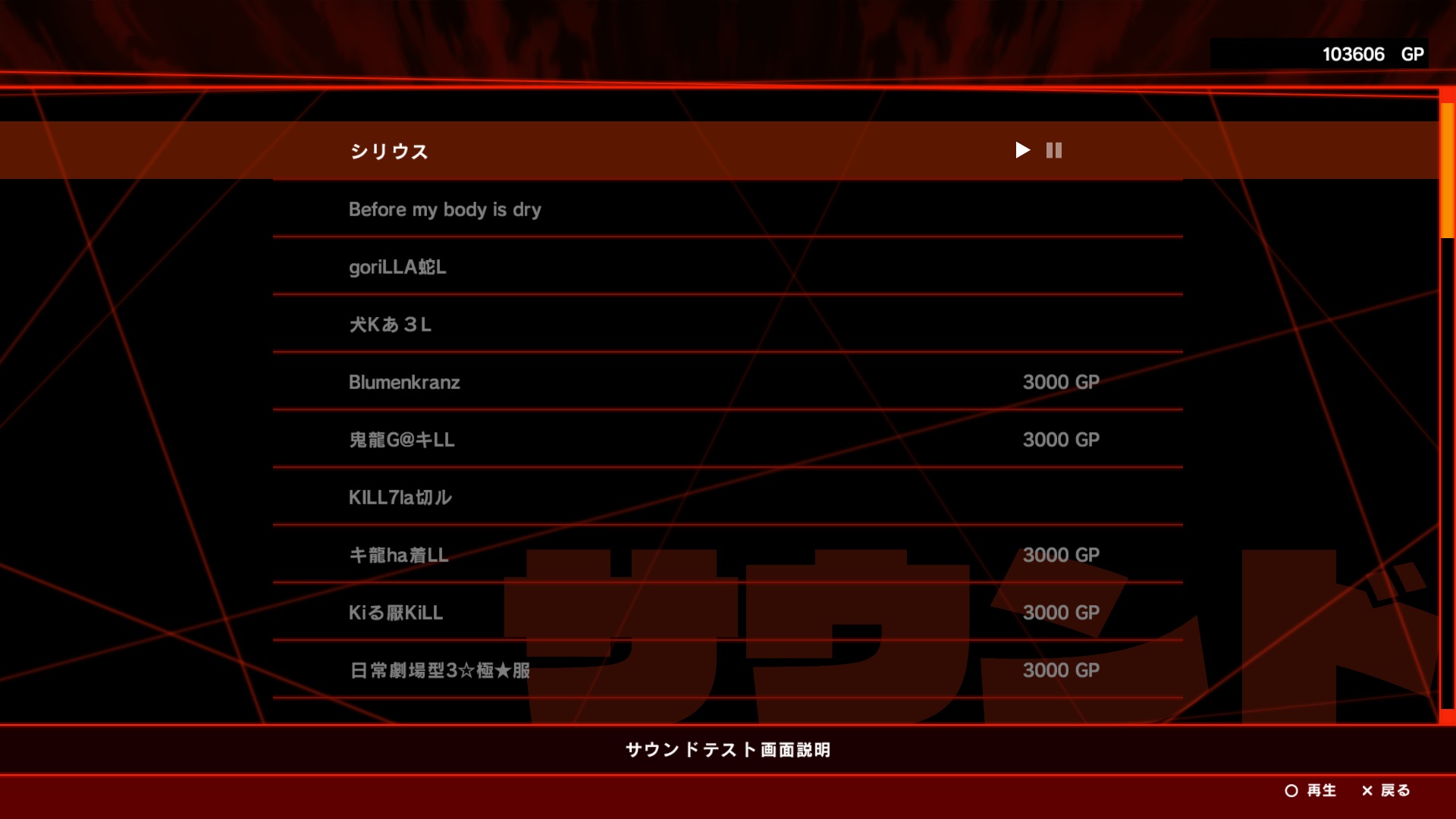 – You can play back the various BGMs in the game here. Unlock more songs using Gallery points