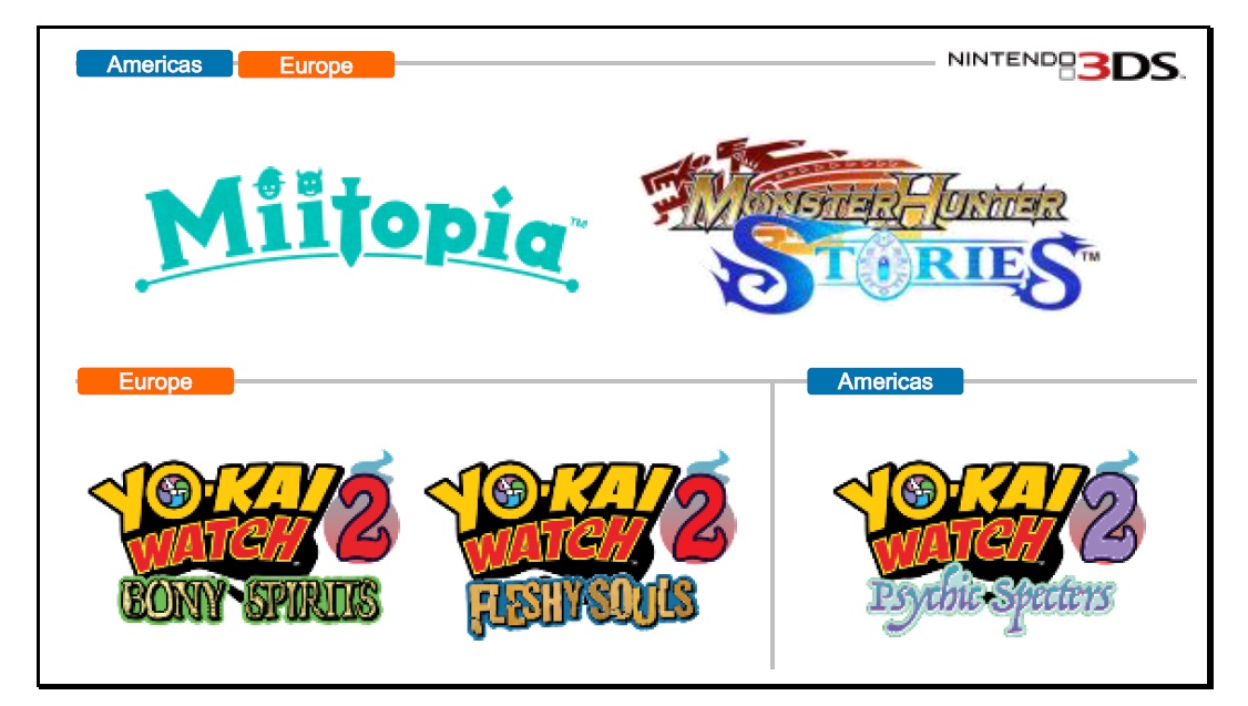 This slide shows announced titles from third parties in Japan that will have already released as of April 2017 or that are planned for release through fall of this year. As you can see, we have a rich lineup of games planned for Japan again in this fiscal year.