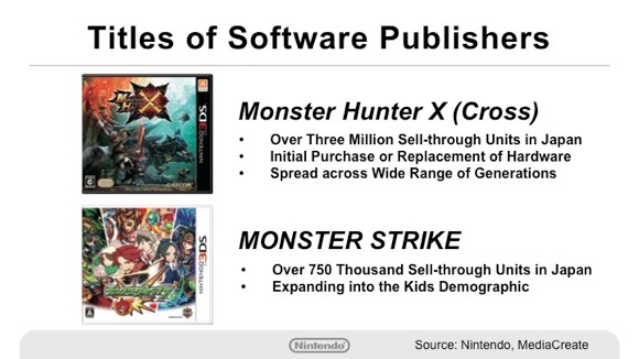 Also, mixi, Inc.’s MONSTER STRIKE has sold-through over 750 thousand units, and it was played widely among young consumers. We aim to propose “the next title to play” from our rich software lineup to these young consumers who started playing games with titles such as the ones mentioned here. In the end, we intend to increase the number of consumers who regularly enjoy playing games for many years to come.