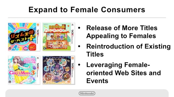 Through these activities, such as setting up a female-dedicated web site called “Nintendo 3DS for girls” and holding events at shopping malls and other facilities, we have feedback that indicates we were able to attract a wider generation of female consumers who previously had no interest in games.