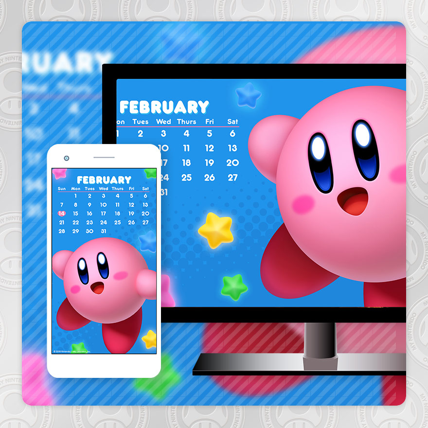 First, a theme is up for grabs called “Kirby Battle Royale: May the Best Kirby Win!”. You can also order a February calendar for your PC, smartphone, and tablet. The two cost 100 and 50 Platinum Points respectively.