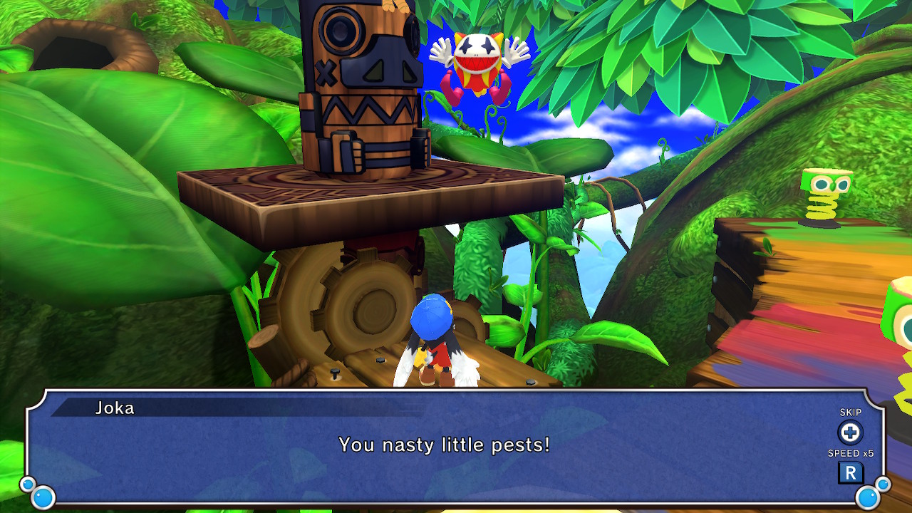 Every few stages culminates in some sort of boss battle, and while these were all solid, they didn’t feel as engaging overall as the main levels. That mostly is due to predictable and simple attack patterns that have been done to death at this point, with a few exceptions here and there towards the end of each game. I still enjoyed them, though, mostly due to the corny writing that the villains would espouse. That applies particularly strongly for a character named Joka, who is basically Klonoa’s equivalent of Bowser Jr and is simultaneously a subtly funny henchman and an absolutely massive jerk.