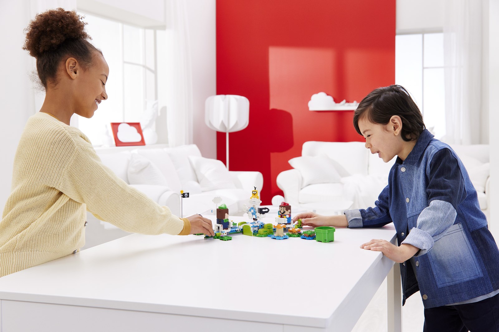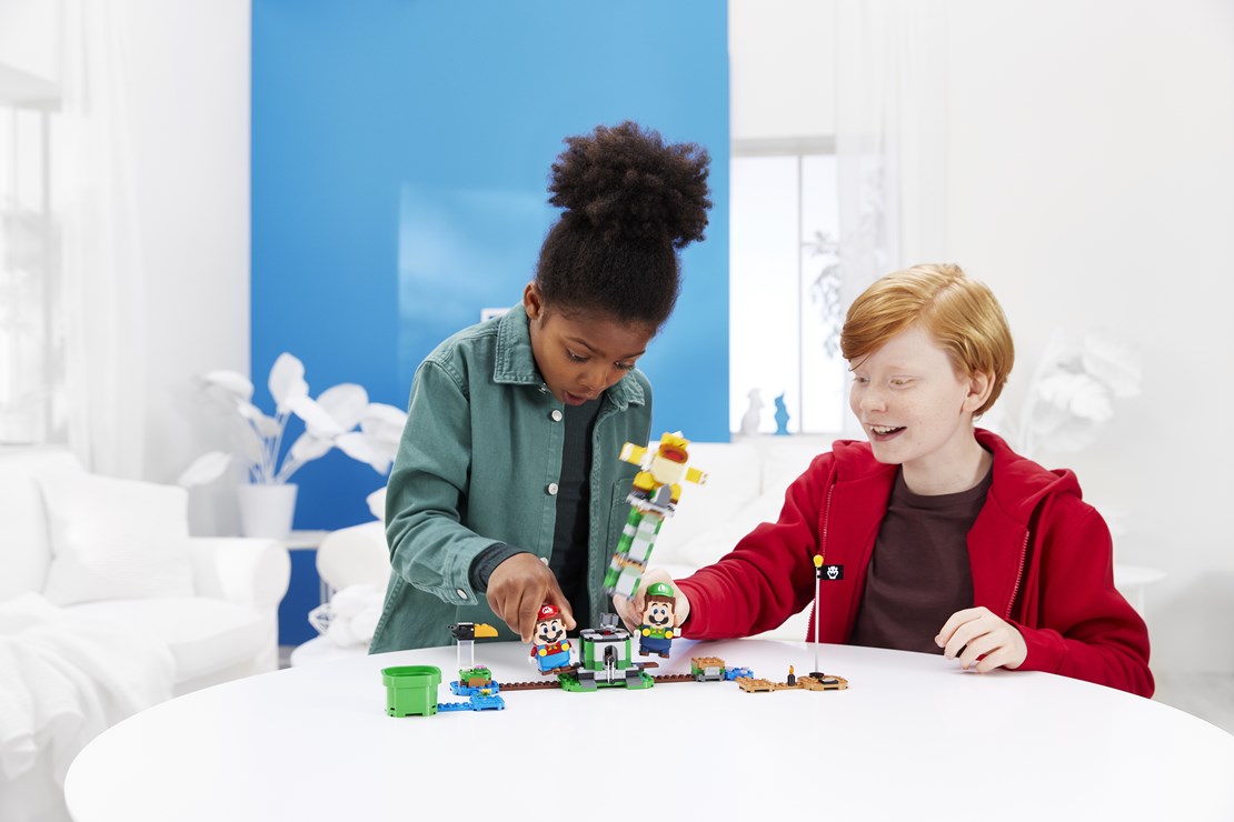 Once connected via Bluetooth, 2-player adventures with LEGO Mario and LEGO Luigi (or any combination of the two figures) are made possible. Now, children and fans can play as a team, collect extra digital coins by doing in-sync actions like walking, flipping and jumping, or work together to defeat enemies, complete challenges, share rewards or even by changing up the play and competing against each other.