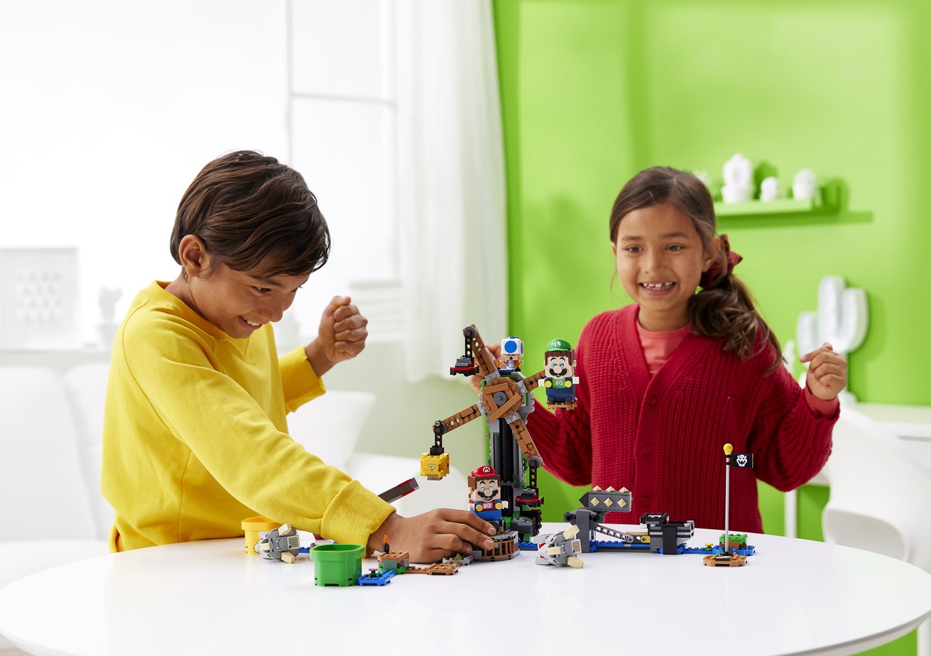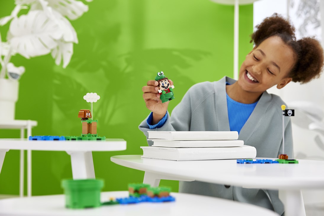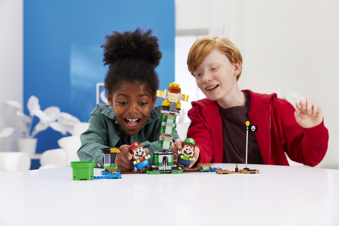 The other new products introduced today include: Frog Mario and Bee Mario Power-Up packs, which let players change up play and dress LEGO Mario in his playful frog and bee suits; and a Boss Sumo Bro Topple Tower Expansion Set, where kids can use their LEGO Mario and/or LEGO Luigi figure to bring down the Topple Tower – fun for solo play, or for playing with friends and family.