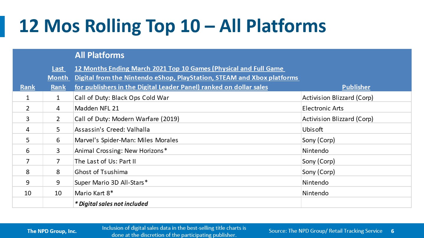 March 2021 NPD: Best-selling games on Switch, year-to-date, last 12 months