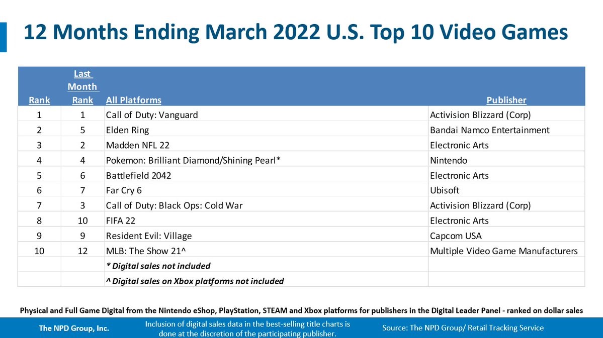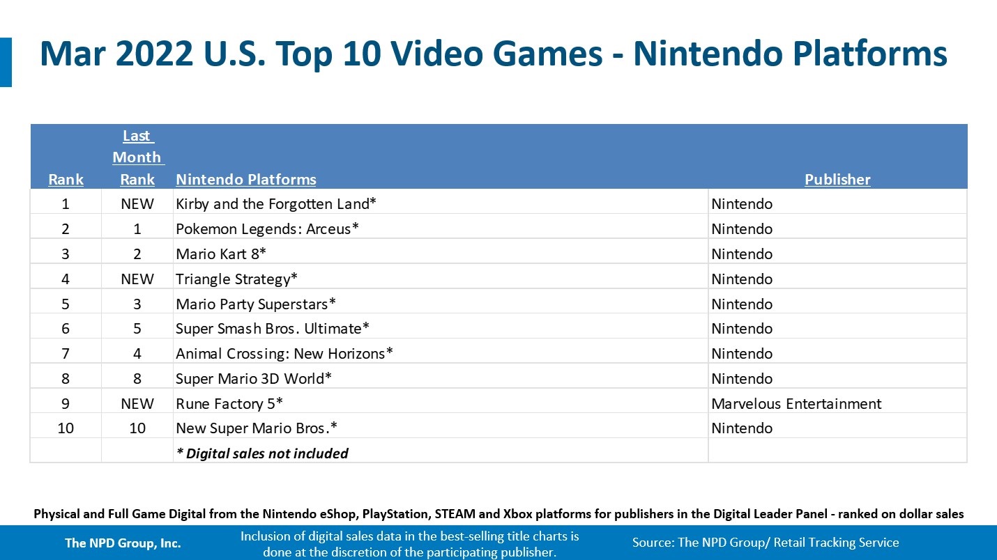 March 2022 NPD: Best-selling games on Switch, year-to-date, last 12 months