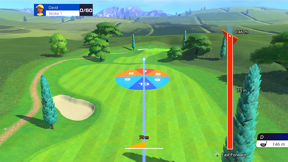 Curve your shot to avoid hazards and put spin on the ball to affect how it rolls after landing. Several features are on hand to help you conquer the course, including a shot gauge that adapts to the angle of the slope and a scan that lets you read the terrain.