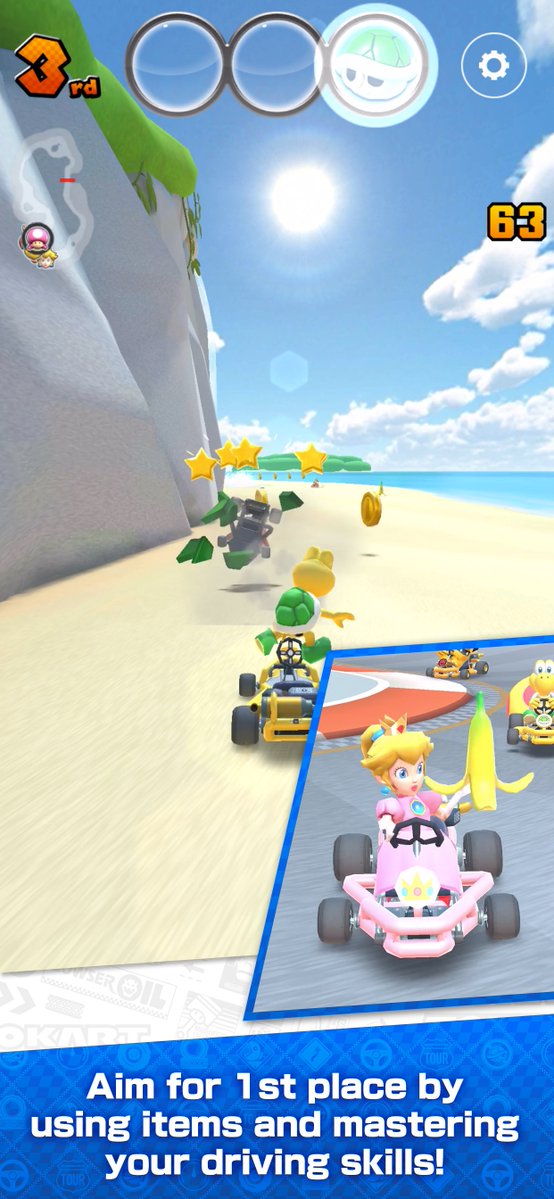 The Mario Kart series known and loved by many is ready to take the world by storm – one smart device at a time! With just one finger, you can steer and drift with ease, sling devastating items as you go for the gold in cups filled with new and classic Mario Kart courses.