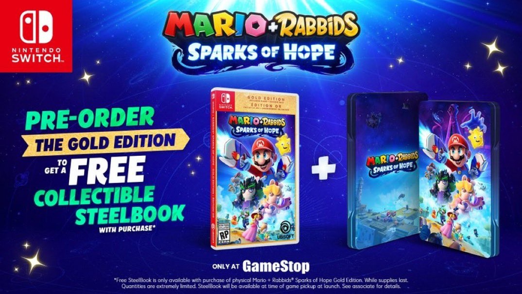 Note that as a bonus, GameStop will provide a steelbook when you pre-order the Mario + Rabbids Sparks of Hope Gold Edition.