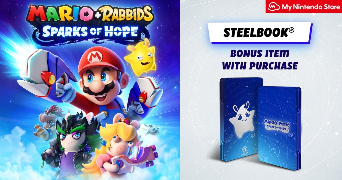 You can pre-order Mario + Rabbids Sparks of Hope on the UK My Nintendo Store here, and as a bonus, buyers will receive the steelbook pictured above.