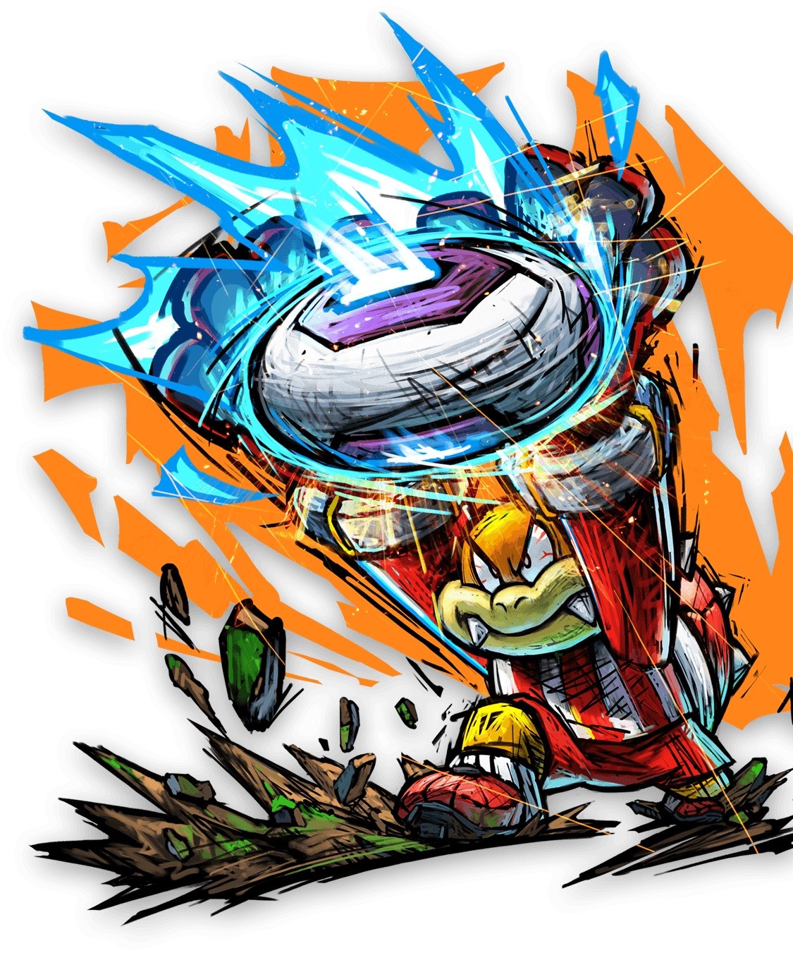 Introducing Strike, a 5-on-5, soccer-like sport with no rules – do whatever it takes to win! Get gritty and try to score the most goals by tackling enemies, using items, and pulling off score-boosting Hyper Strikes. Super Mario series mainstays like Peach, Toad, and Yoshi put their cleats (and stats) to the pitch and will stop at nothing to score. Customize your characters with gear that can augment their stats and appearance. Take the carnage online or pass the ball to players locally – just look out for the electric fence.