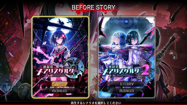 – By selecting “Before Story” from the title screen, you will then be able to select between Mary Skelter: Nightmares and Mary Skelter 2, and then between the “Story” and “Bonus” options
