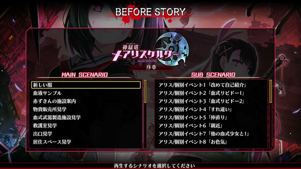 – With the “Before Story” feature, you can view the full story of the Mary Skelter series at any time