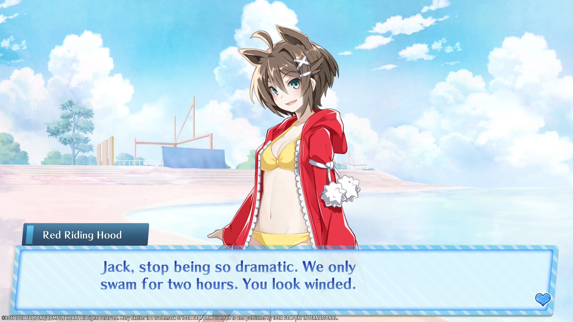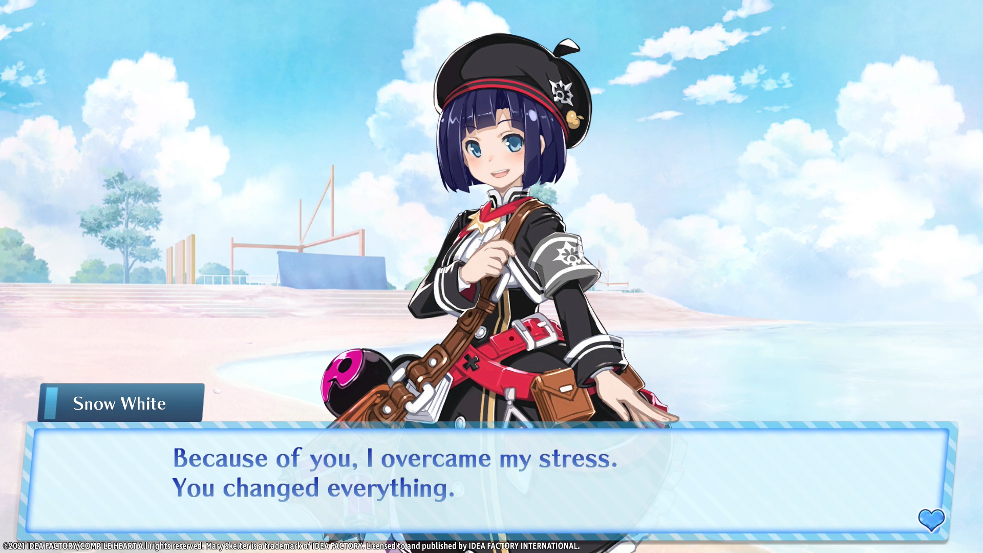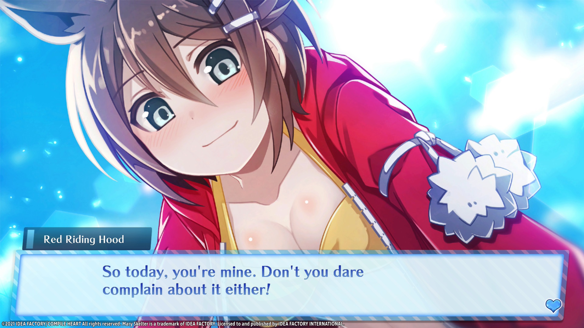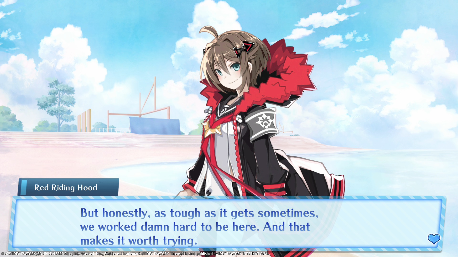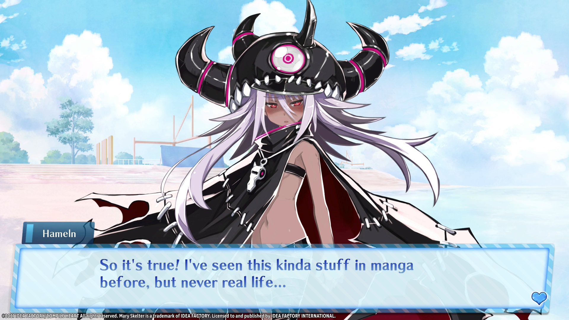 Idea Factory says that True End is canonical to the Mary Skelter series. Locked Up In Love – Blood High (also included in-game), is a spinoff of the Mary Skelter characters in a school setting.