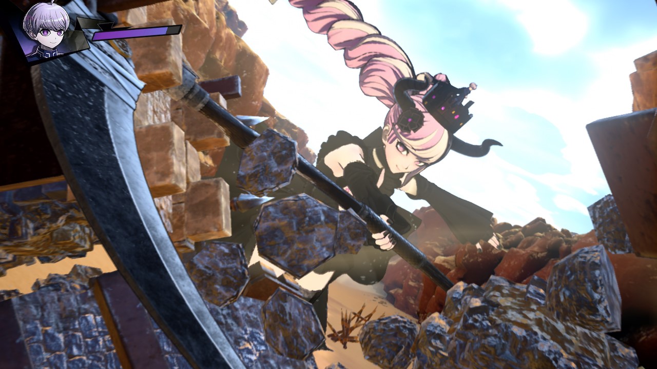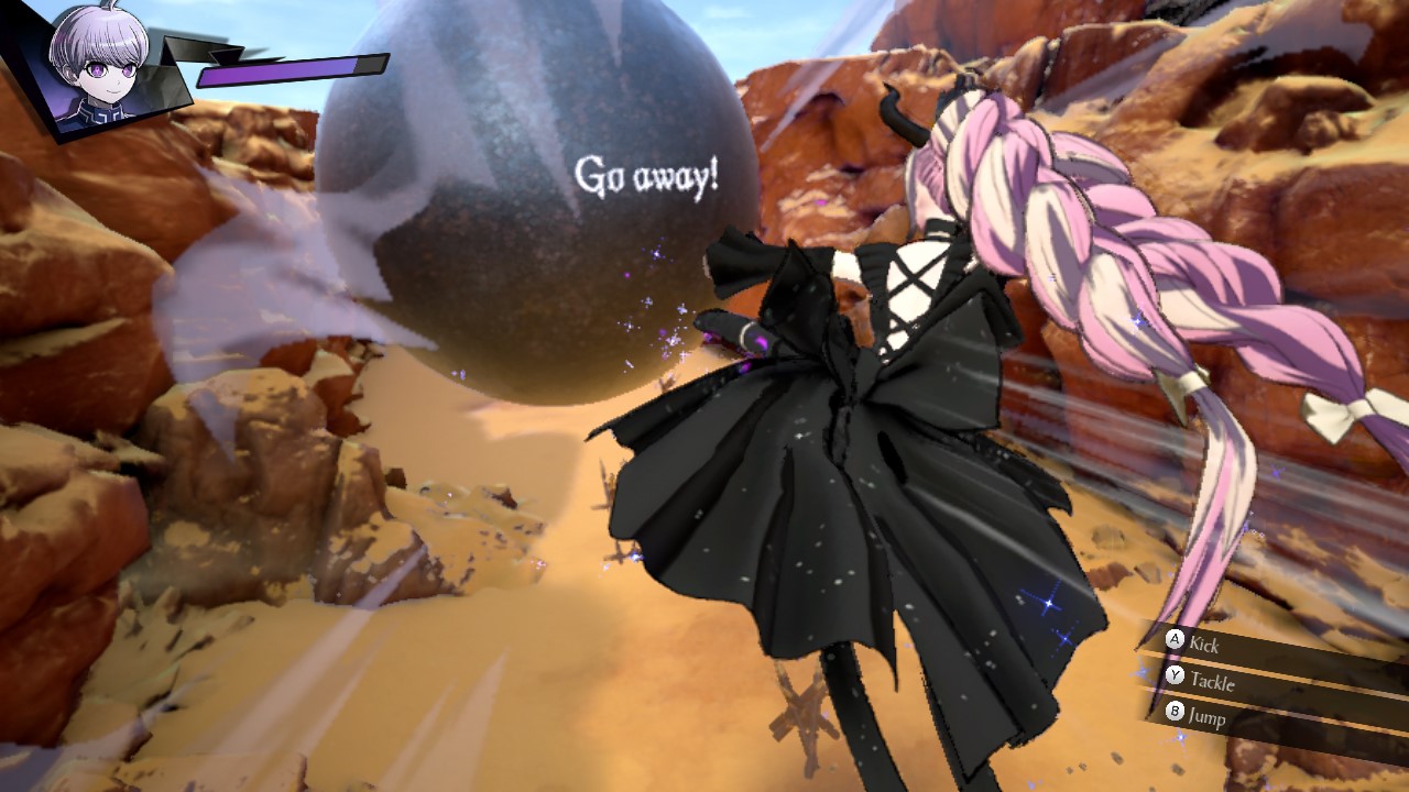 This is an action-packed mystery-solving sequence that occurs at the end of a Mystery Labyrinth. A mega-sized Shinigami pushes forward past obstacles to hunt down the Mystery Phantom that resembles the true culprit. Kick iron balls out of the way, tackle through walls, and jump to avoid spikes.