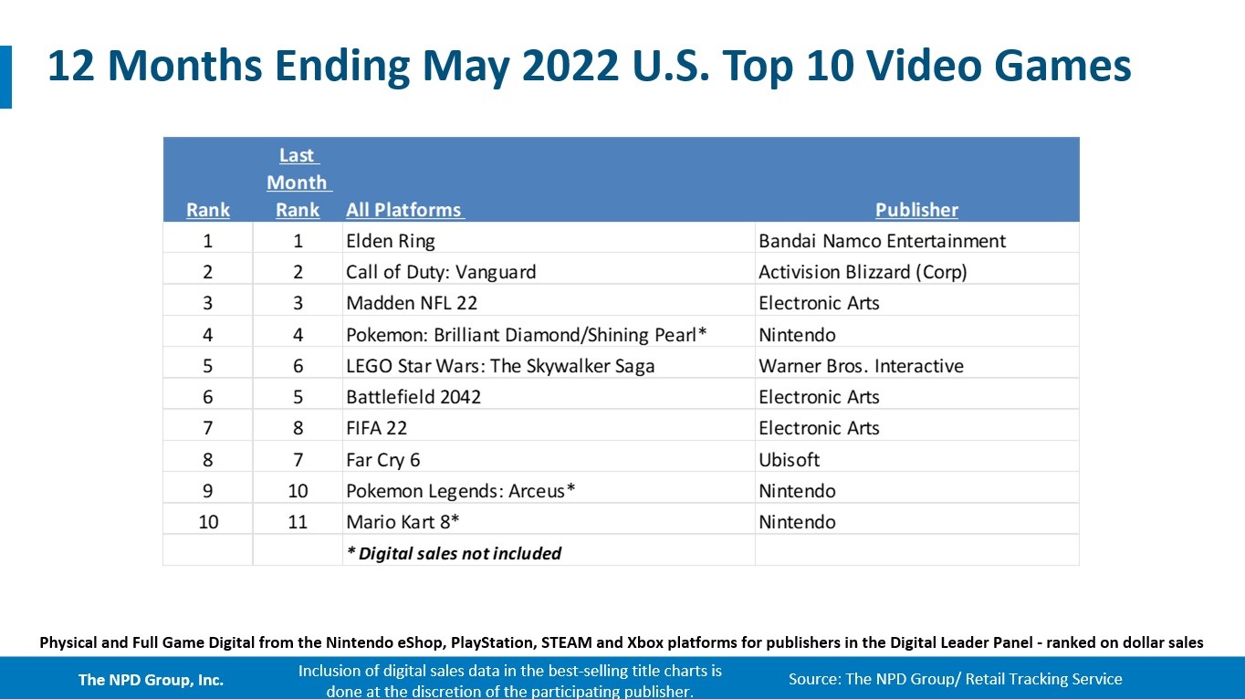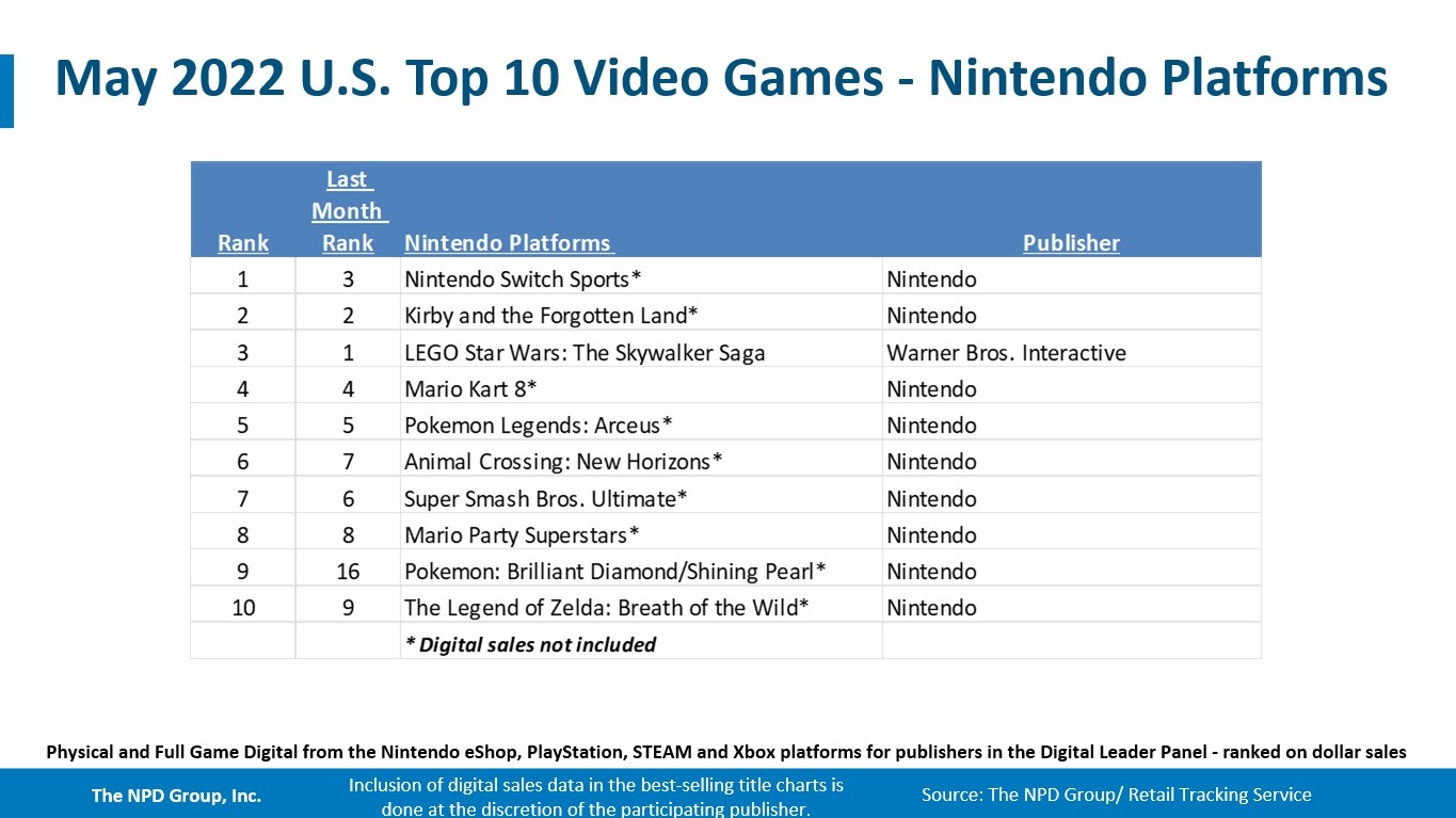 May 2022 NPD: Best-selling games on Switch, year-to-date, last 12 months
