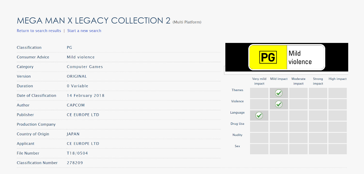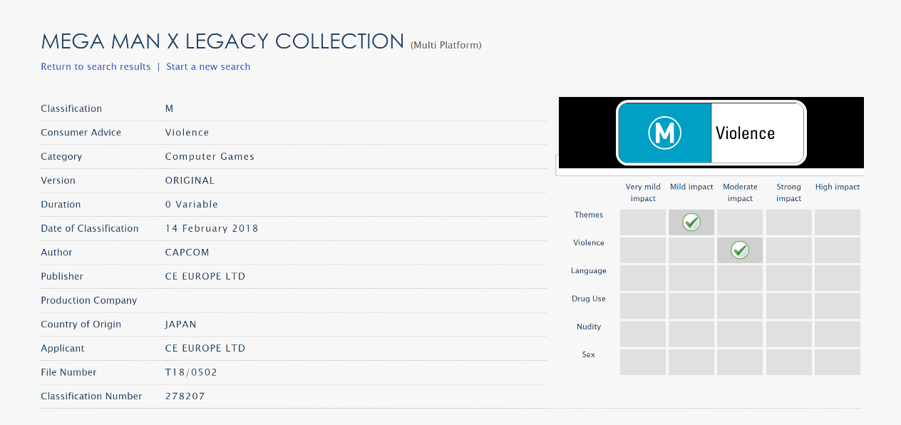 Ratings from Australia suggest that the Mega Man X games will be brought to Switch as two separate packages. Today, Mega Man X Legacy Collection and Mega Man X Legacy Collection 2 were both rated by the official Classification Board.