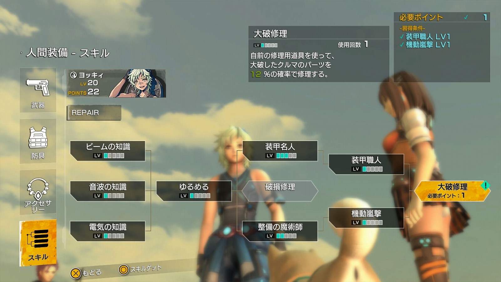 – Yokky has additional skills centered on the “Repair” skill tree that utilize his talent for tinkering with machines