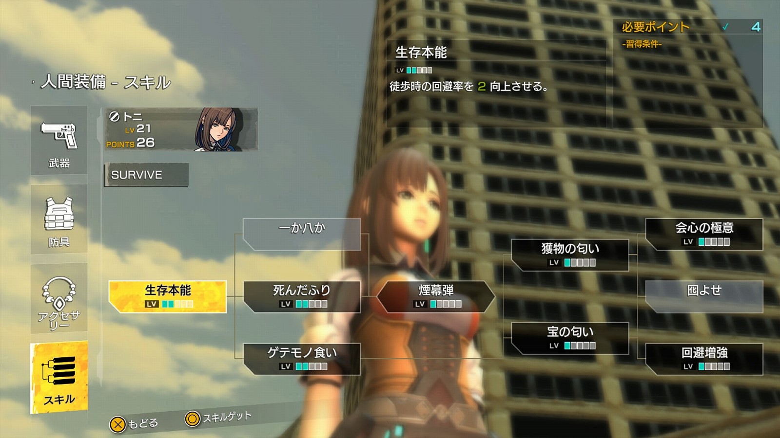 – Toni has additional skills based on the “Survive” skill tree to assess the survival of both herself and her friends