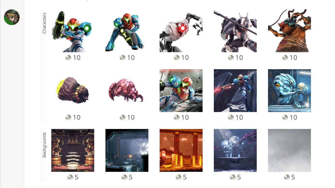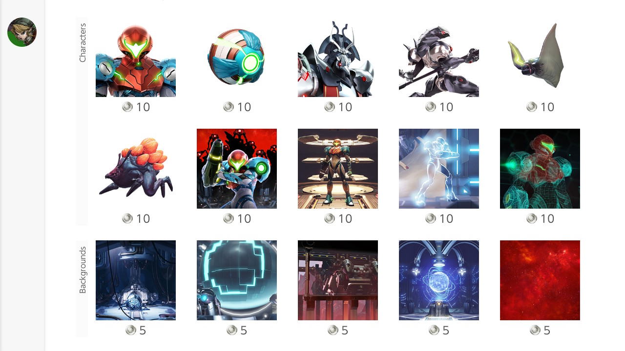 Characters, backgrounds, and frames are here per usual. For characters, each one costs 10 Platinum Points on My Nintendo. Backgrounds and frames are 5 Platinum Points each.