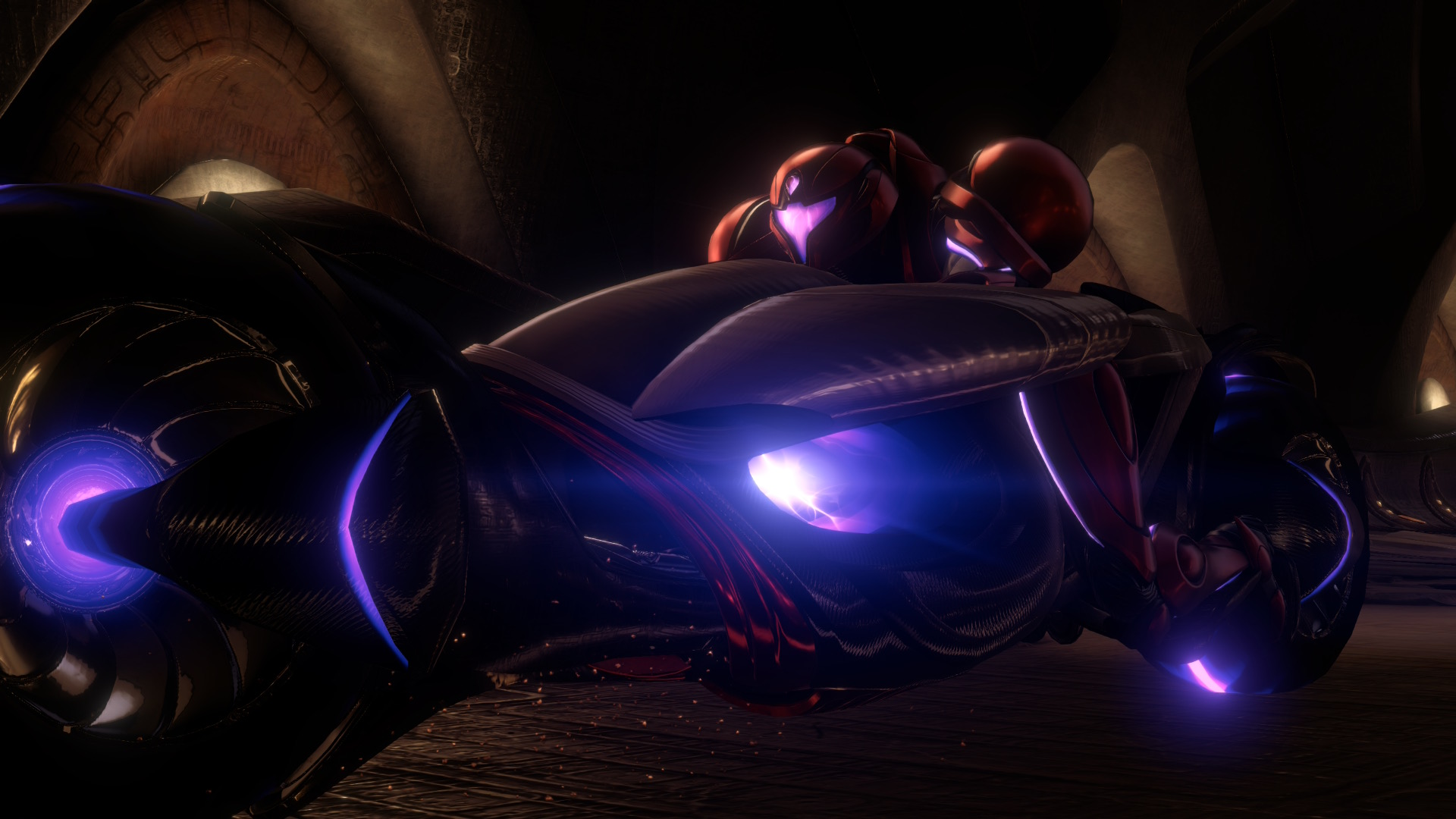 Luckily, those moments of isolation are still in the game in force, albeit less common than in the older games. I can understand why perhaps Retro Studios wanted to include the desert overworld biome of Sol Valley as the quiet connective tissue (other than the radio chatter) between these more dialogue and action-heavy biomes. As mentioned earlier, I appreciate them trying to build out Viewros in a more “logical” way so to speak, rather than just having everything connected by elevators. It’s really not a concept I’m inherently opposed to. And Sol Valley isn’t completely barren. Some of Samus’ upgrades are hidden in the debris scattered across it, or in underground ruins that play out like mini puzzles. It’s admittedly pretty fun to zip over the sand dunes on her motorcycle (weirdly name Vi-O-La), even if it always feels a little out of place doing something so arcade-y in a Metroid game.
