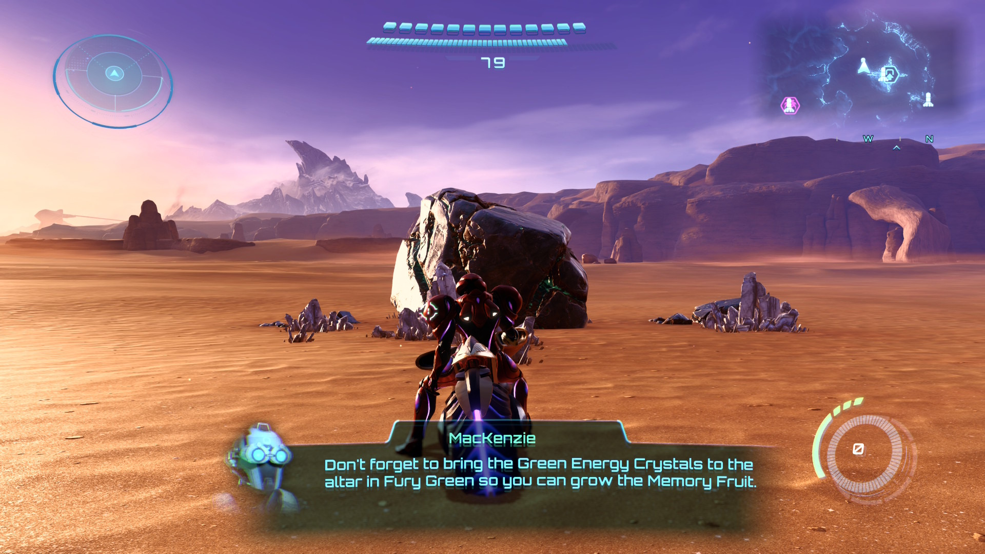 The bigger issue with these new faces is that there are times I really wish they would leave Samus alone. Any time Samus is out exploring Sol Valley, the desert overworld that connects the game’s (much more interesting) other biomes together, the player can’t go more than a few minutes without one of the characters chiming in over her radio and telling her where to go next. This is frustrating because not only did I generally not need or want this information, it sometimes had the effect of making it look like Samus needed that kind of help when her character most certainly would not. It’s one thing when the Federation troopers are actually with her in the same room, trying to assist and communicate in what could feasibly be perceived as a high-risk scenario. But when I as a player am trying to explore, immerse myself in the ambience and might want to feel a little lost, it really just ruins the moment.