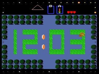 To start: when the clock screen is pulled up, the first Legend of Zelda game will display and change its environments based on the time of day it is. There are several variations of this, such as night and day scenes, but there are also special events that occur at unique times like when all the numbers are the same at “2:22.”