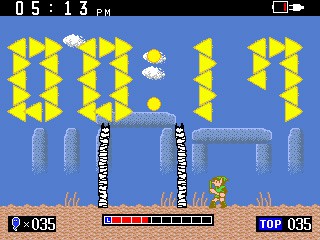 Finally, there is a playable timer that features levels in the style of Zelda II: The Adventure of Link. There are 3 stages that can be played in this timer: forest, desert, and temple, and just like the clock, a button can be pressed to control the character or let it auto-play. There is even a counter to see how many monsters can be defeated before the timer runs out.