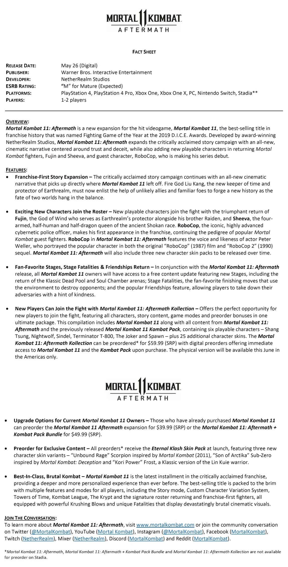 We have more information about Mortal Kombat 11: Aftermath here. We also have some screenshots below, along with a fact sheet.