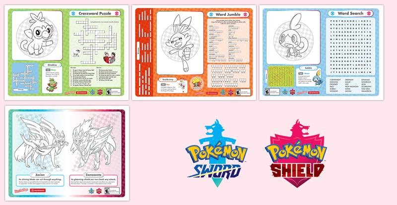 The other reward, priced at 50 Platinum Points, are activity sheet placemats. Once again, they feature Grookey, Scorbunny, Sobble, Zacian, and Zamazenta. “You can download, print and have a fun lunchtime activity,” Nintendo says.