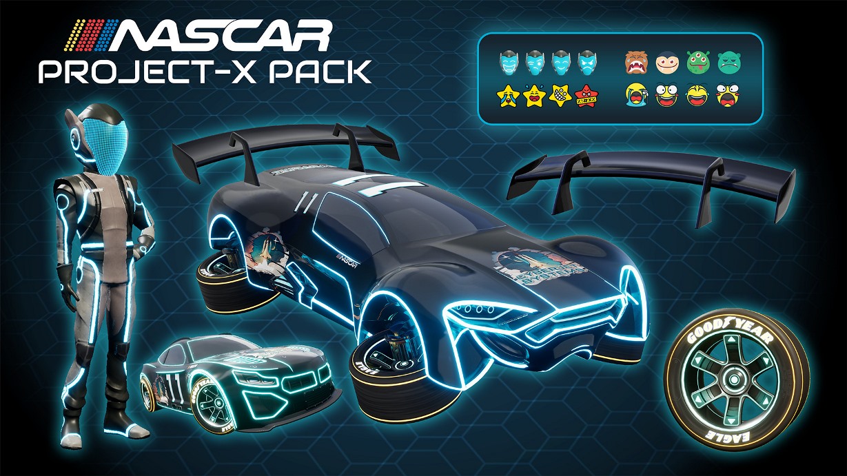 This title will be sold physically and digitally for $50. Also planned is the digital-only NASCAR Project-X Bundle which has the full base game, a hovercraft car model developed as part of Project-X. Project-X paint scheme, rims, wheels, and spoiler, Project-X themed drivers suit and helmet, Project-X team sponsorship option, Project-X vehicle FX package, and a set of four additional in-game emojis to showcase your style.
