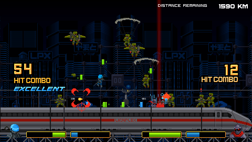 Neon Krieger Yamato is a 2D platformer with fighting game elements. The developers hope to “to capture a mix of stylish combos, fast paced action, and twitch combat puzzles, presented in a pixel art cyberpunk world harkening to the days of 16 bit.”