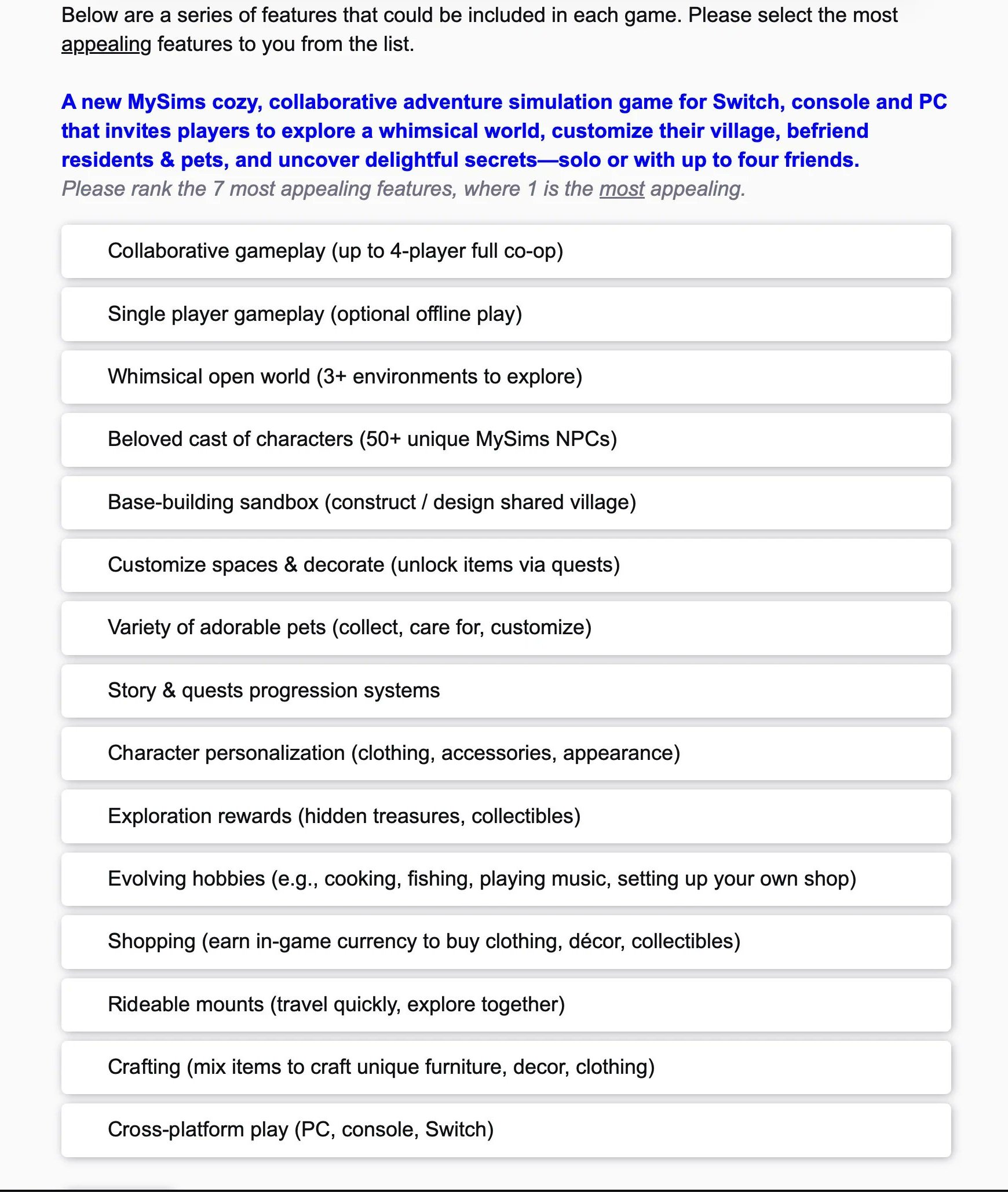 As part of the question, survey participants are asked to rank potentially appealing features. These may further hint at possible mechanics like pets, rideable mounts, crafting, and cross-platform play with PC.