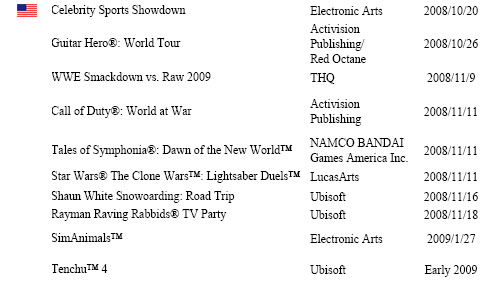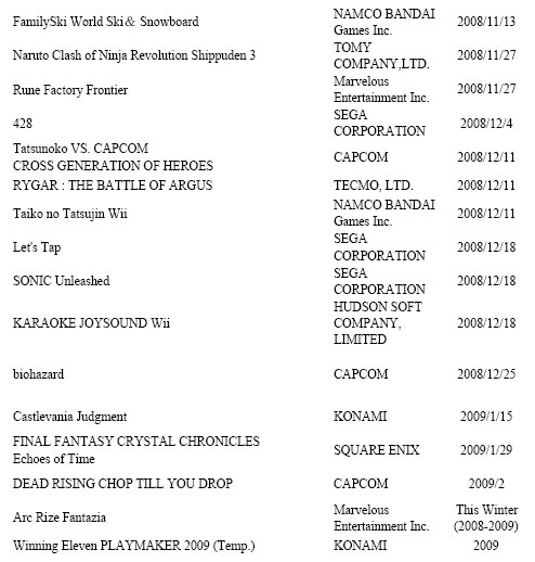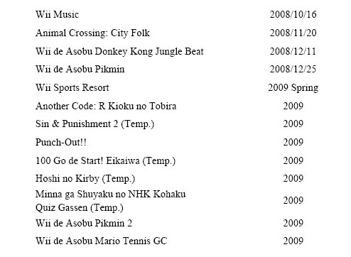 The updated list also shows that Punch-Out should be releasing in the first half of 2009 in North America, and Sin and Punishment 2 is still on track for 2009.