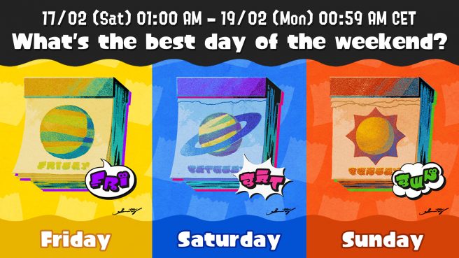 February 1: A new Splatfest is starting soon for Splatoon 3, with an event planned based around the weekend. Namely, the game wants to know which day out of Friday, Saturday, and Sunday is your favorite.