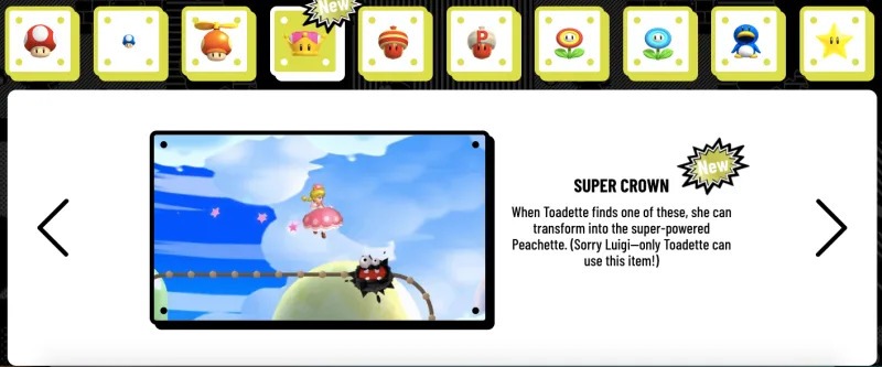 Related to the site’s opening, it seems that hopes and dreams of Bowsette becoming a reality are dashed. The site indicates that only Toadette can wear the Super Crown, so Nintendo hasn’t approved imaginings of other characters wearing it.