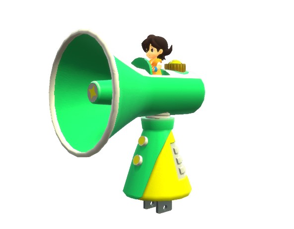 – When he uses his megaphone launcher, he shoots out the letters of the actual words he speaks
