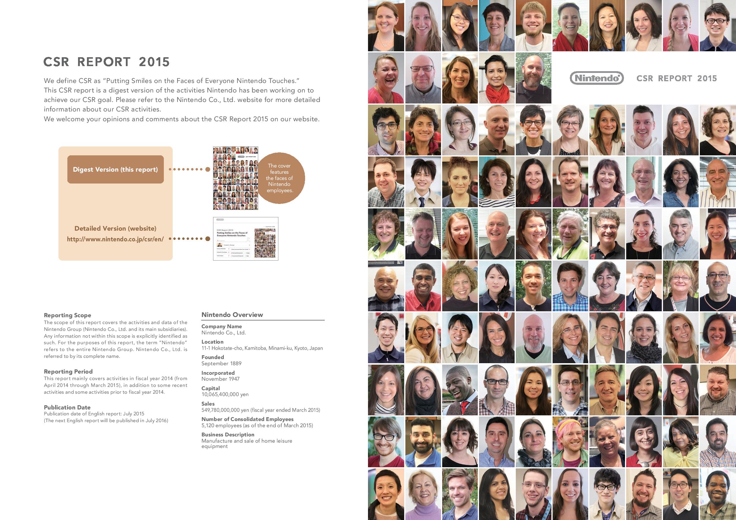 The Nintendo CSR Report 2015 has now been published. You can find it in full here, and the digest version here.