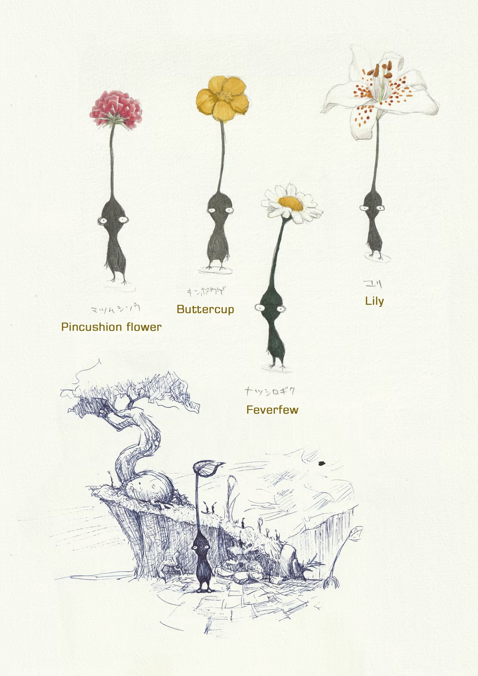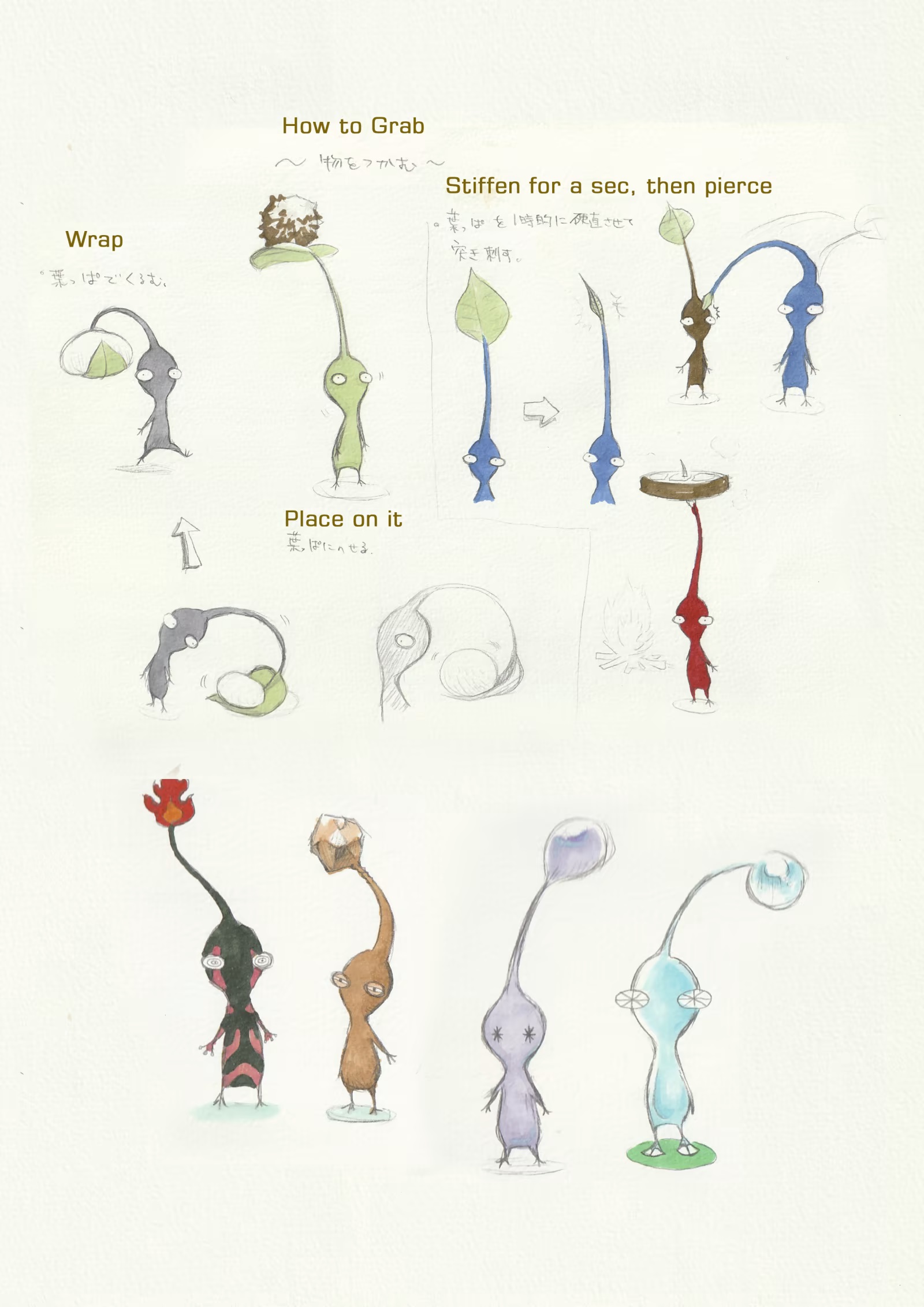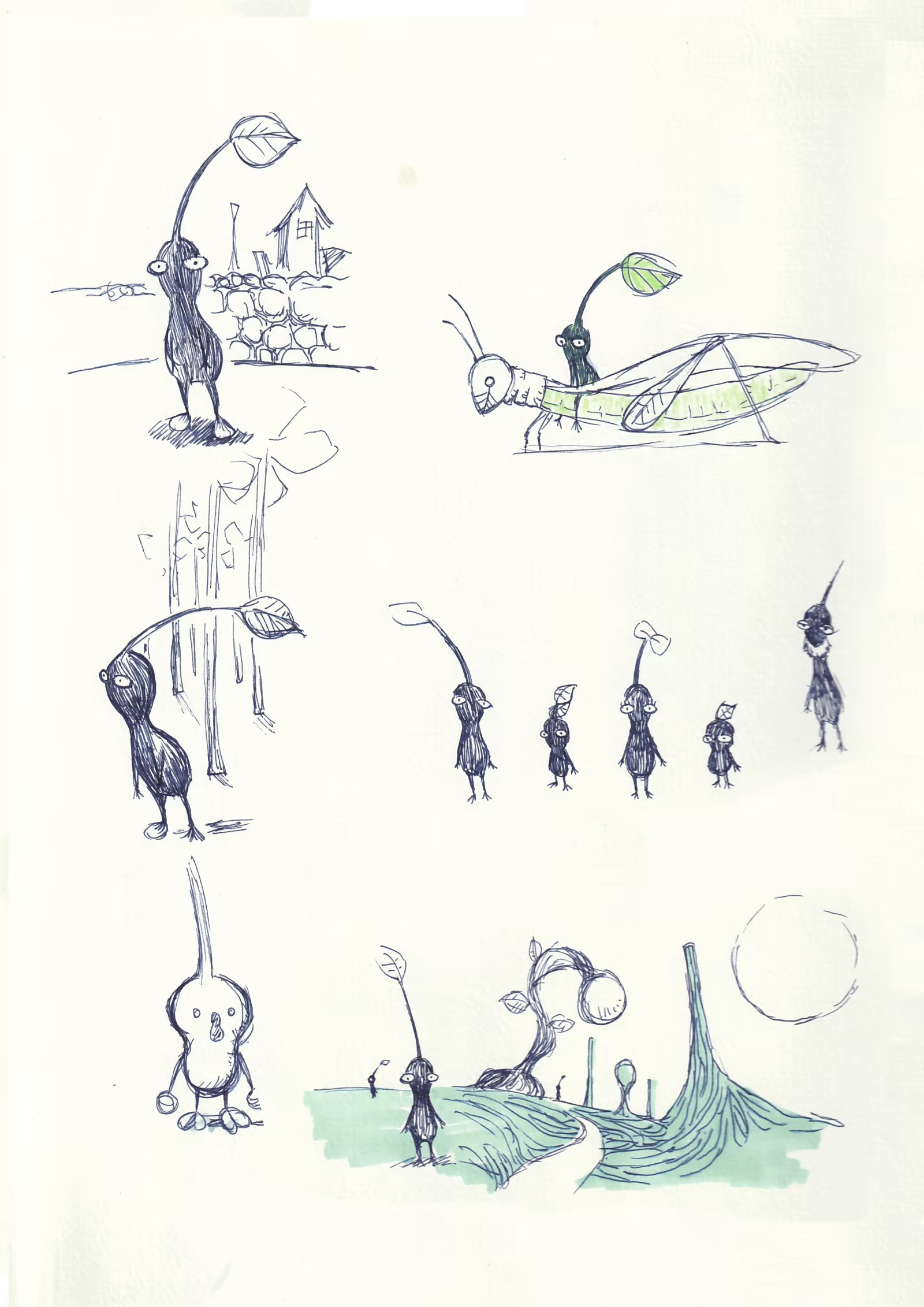 Suddenly it looks more like the Pikmin we’re familiar with. I notice that having a mark on its head is aligned with the initial concept.