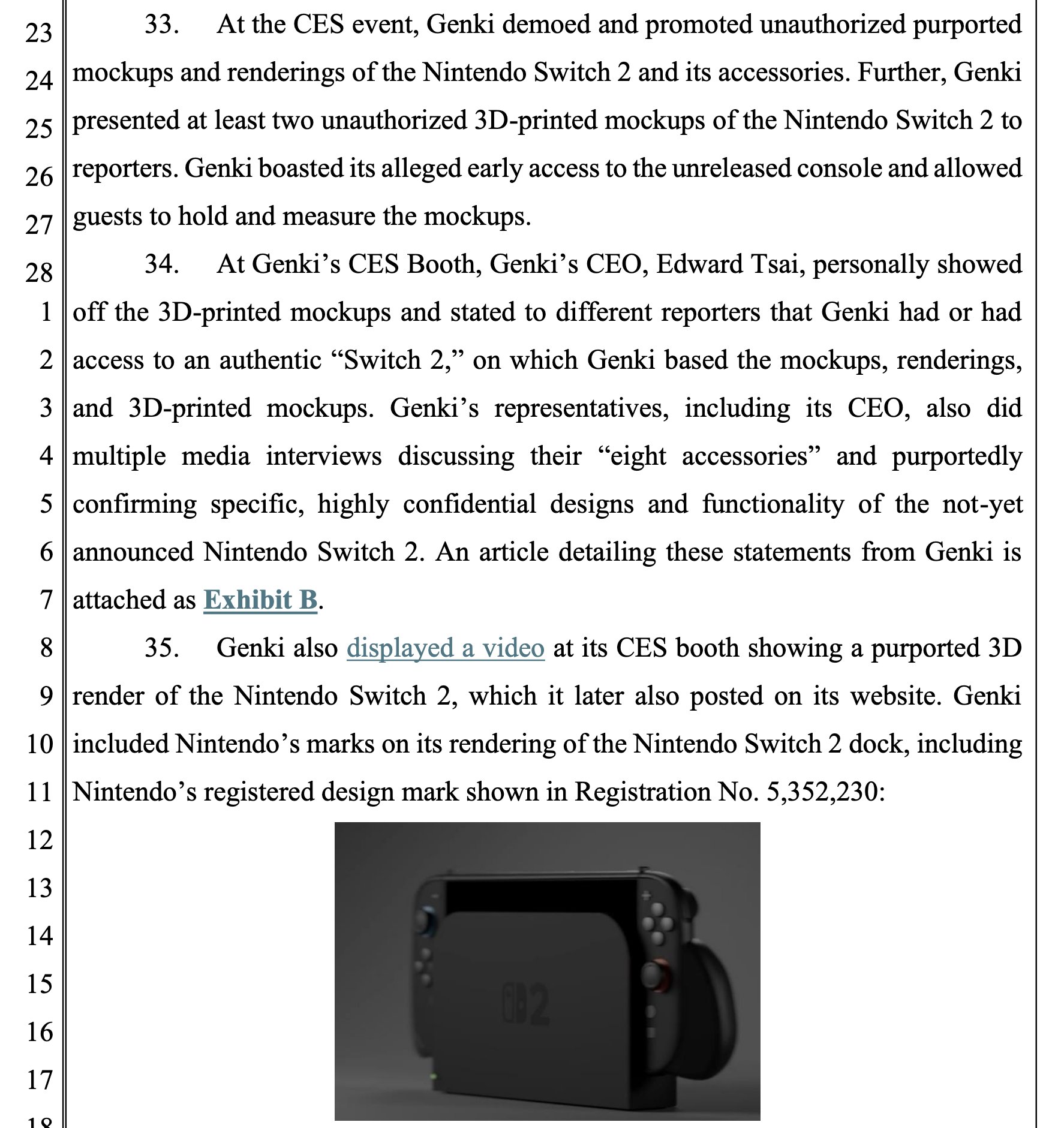 That brings us to the most recent development. Nintendo has now officially filed a lawsuit against Genki, claiming that the violated their trademarks. Genki, Nintendo says, “demoed and promoted unauthorized purported mockups and renderings of the Nintendo Switch 2 and its accessories” at this year’s trade show.