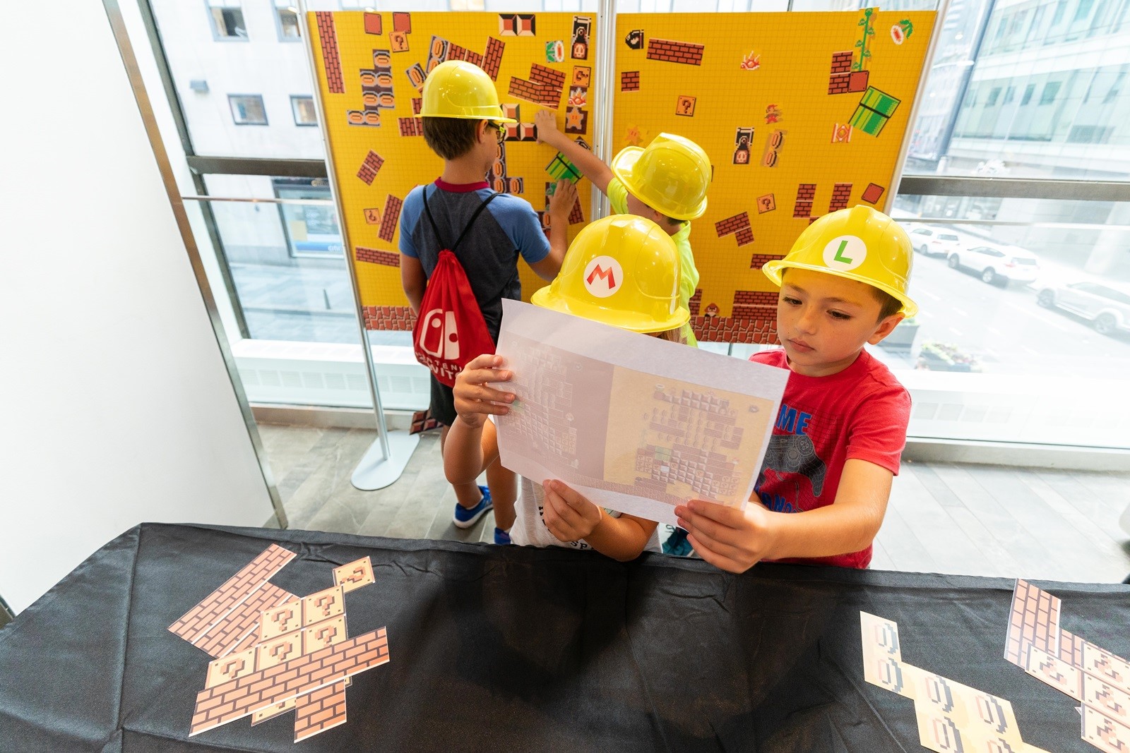 In this photo provided by Nintendo of America, siblings Gavin, age 9, Glen, age 7, and Grace, age 5, with Maximo J., age 7, participate in a Super Mario Maker 2 Puzzle Challenge during a special event at the Nintendo NY store in Rockefeller Plaza on Aug. 18, 2019. Super Mario Maker 2 is now available for the Nintendo Switch system.