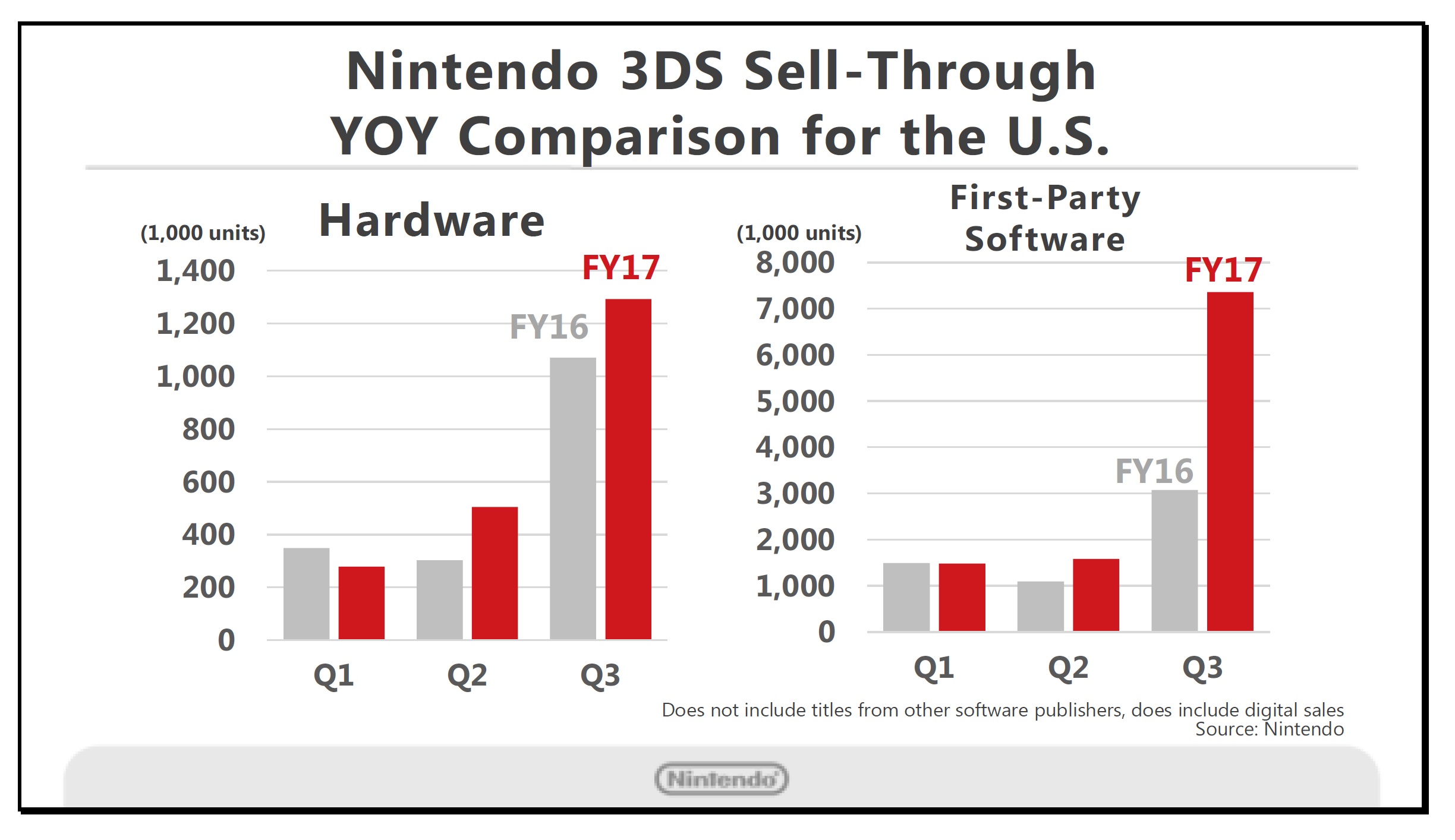 Moon. This was the sixth year-end period since the launch of Nintendo 3DS, but major titles continued to drive hardware sales, and sell-through of hardware and software for the entire year was up compared to the previous year.