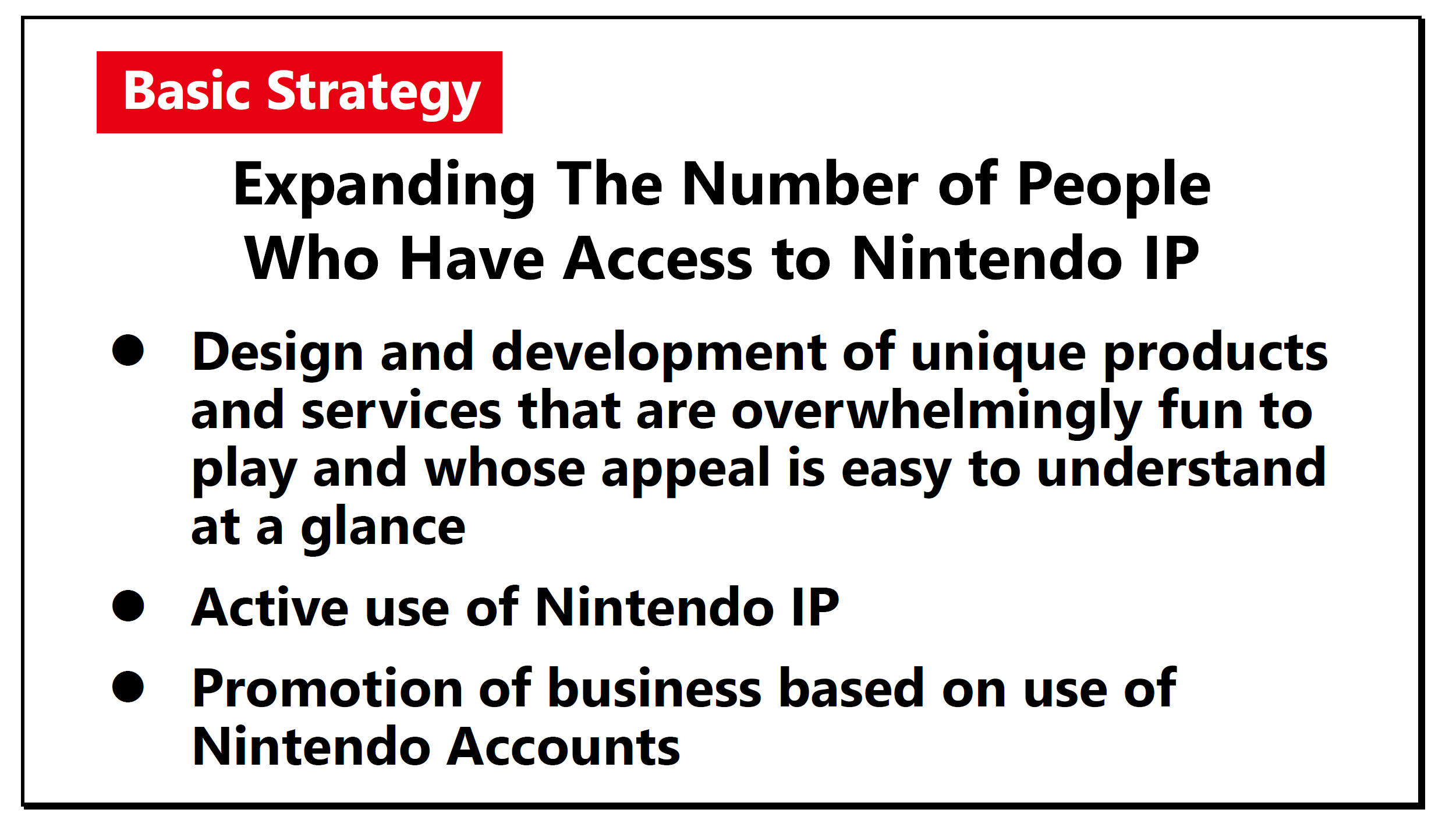 We are continuously pursuing our basic strategy of expanding the number of people who have access to Nintendo IP.