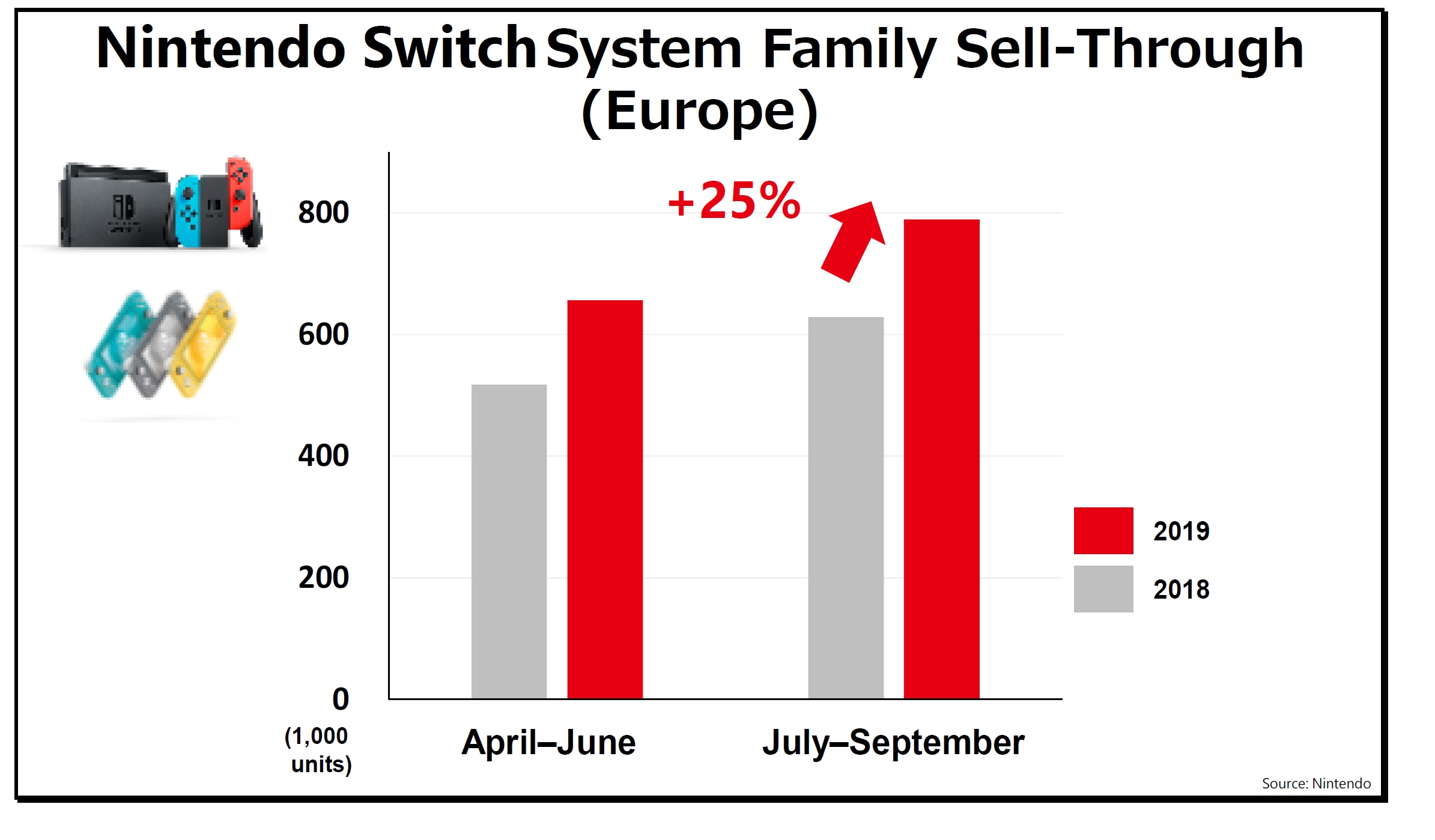Sales in the European market also exceeded those of the same period in the previous fiscal year by 25%. As recently reported by Nintendo of Europe, total sellthrough in the European market has exceeded 10 million units.