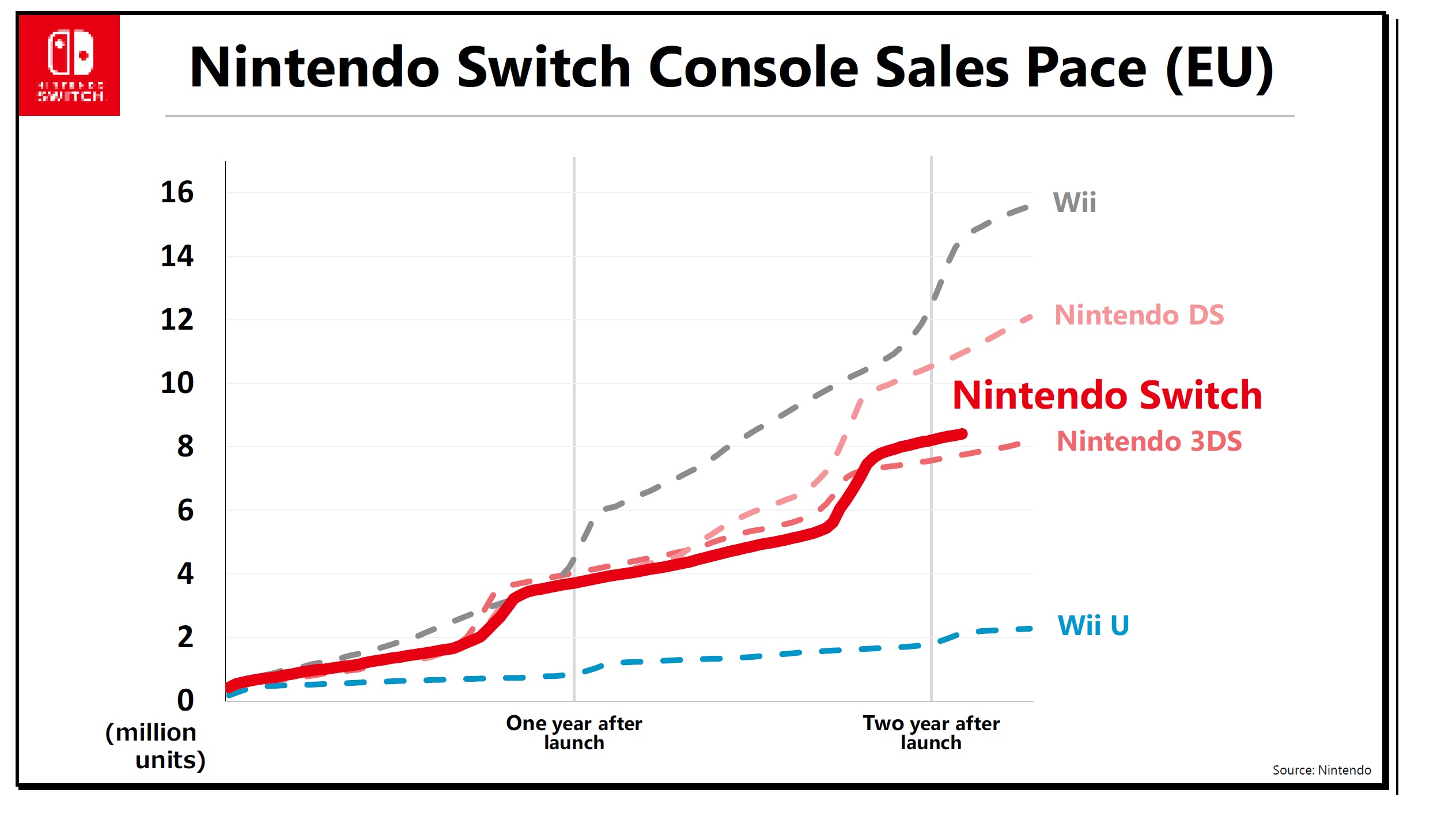 These are the figures for the European market. Since its second holiday season, Nintendo Switch has surpassed the pace set by Nintendo 3DS.